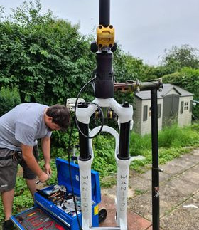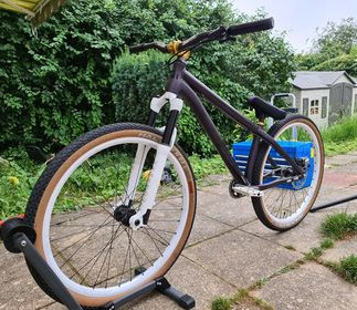 We first started with a few basic upgrades and mods including the removal of the front brake and replacement of the rear brake with a Shimano Deore hydraulic. This eventually evolved into a full rebuild with new wheels, forks, cockpit, drivetrain and even paint!